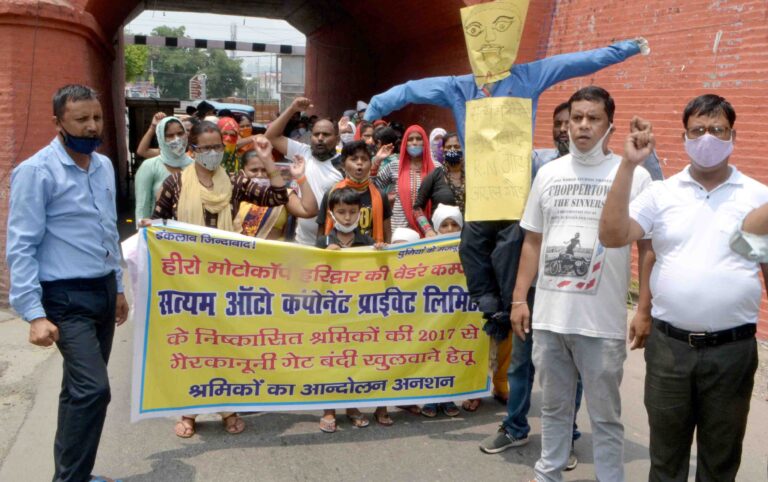 --------------------01 Haridwar. The workers fired from Satyam Auto Components located in SIDCUL along with their families took out a rally...