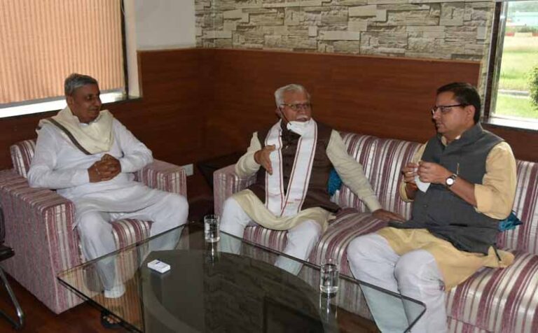The Chief Minister, Mr. Pushkar Singh Dhami called on the Chief Minister of Haryana, Mr. Manohar Lal Khattar at Sahastradhara...