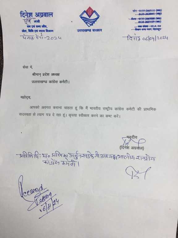 Former cabinet minister Dinesh Aggarwal has joined BJP. BJP State President Mahendra Bhatt got him the membership of the party. During this, BJP’s Lok Sabha candidate from Haridwar Trivendra Rawat, former Chief Minister Ramesh Pokhriyal Nishank, Rajya Sabha MP Naresh Bansal were also present. Along with this, BJP MLA from Dharampur Vinod Chamoli was also present.