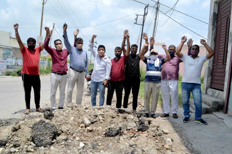 Traders demonstrated against road breaking Under the leadership of Vipin Gupta, President of City Business Board Jwalapur and General Secretary...
